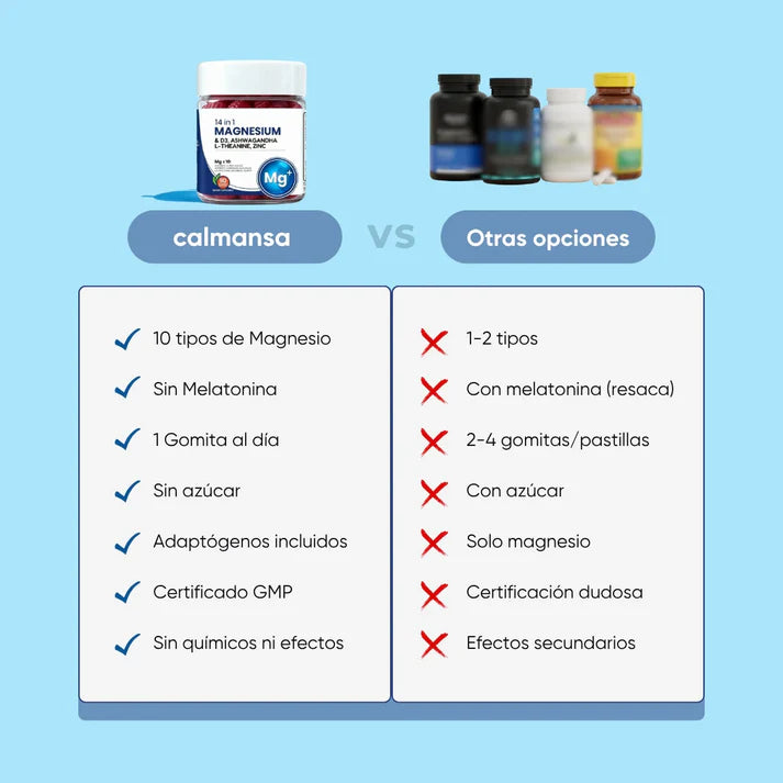 Sí, puedes tomarlas junto con otros suplementos comunes. Solo evita combinar varios productos con magnesio en altas dosis para no duplicar la ingesta diaria.